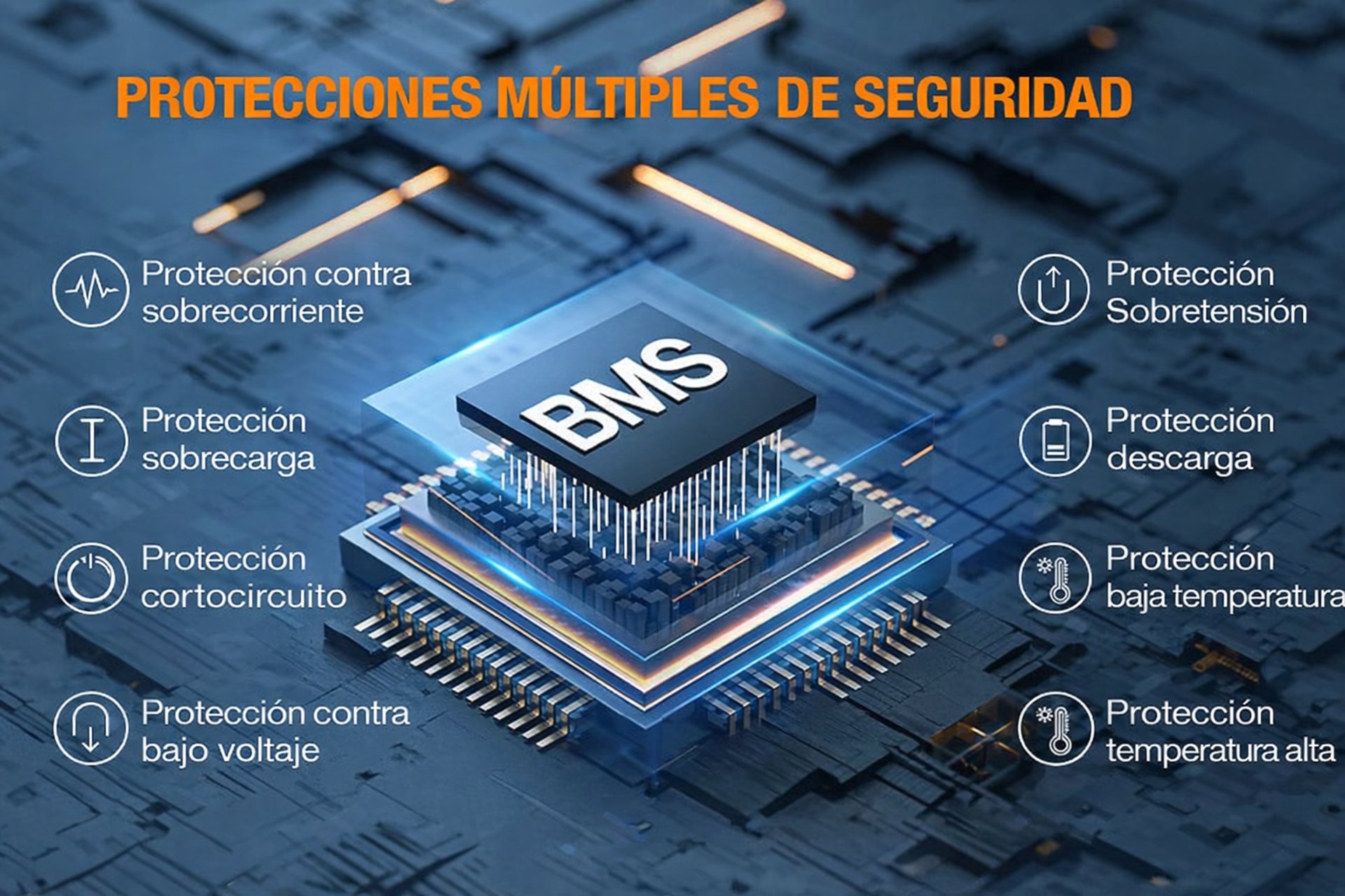 La central eléctrica de 1000 W tiene un BMS avanzado con protecciones integrales de seguridad múltiple, que incluyen sobrecorriente, sobretensión, sobrecarga, sobredescarga, cortocircuito, baja tensión, baja temperatura y alta temperatura , lo que garantiza un funcionamiento confiable y seguro en todas las condiciones.