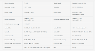 Estación de energía portátil GRECELL de 1000 W